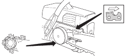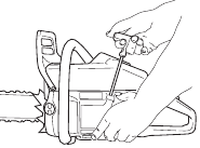 | The chain brake must be engaged when the chain saw is started. | ![]() | |