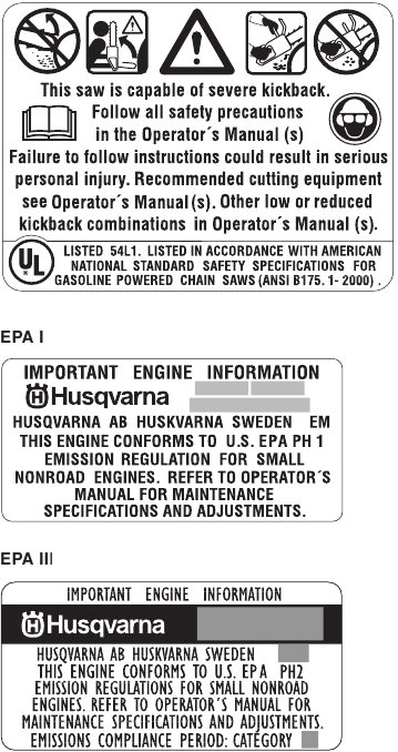 You will find the following labels on your chain saw: