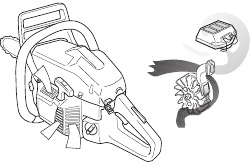 | Ignition; choke: Set the choke control in the choke position. This should automatically set the stop switch to the start position. | ![]() | |