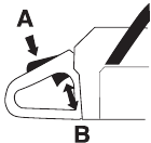 The throttle lockout is designed to prevent accidental operation of the throttle control. When you press the lock (A) (i.e. when you grasp the handle) it releases the throttle control (B). When you release the handle the throttle control and the throttle lockout both move back to their original positions. This arrangement means that the throttle control is automatically locked at the idle setting.