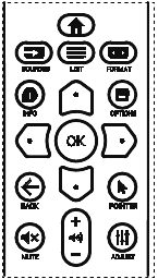 Return to the previous menu while the OSD menu is On. This button can also be used to activate the OSD menu when the OSD menu is Off. - Remote control sensor and power status indicator