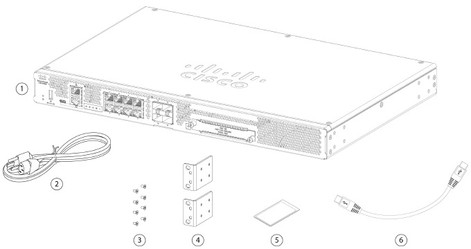 The following figure shows the package contents for the Secure Firewall 1230, 1240, and 1250. Note that the contents are subject to change, and your exact contents might contain additional or fewer items depending on what you ordered.