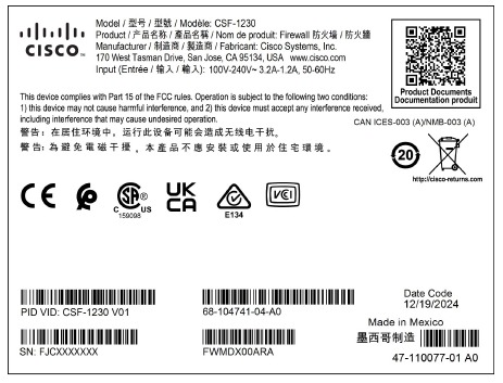See Product ID Numbers, a list of the product IDs (PIDs) associated with the Secure Firewall 1200 series