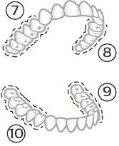 deep clean+: Brush each segment for 30 seconds*![]() | then brush segments 7 and 8 for 20 seconds each.![]() | then brush segments 7, 8, 9 and 10 for 20 seconds each.![]() |