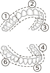 | How to brush | clean: Brush each segment for 20 seconds![]() | Brush each segment for 20 seconds,![]() | Brush each segment for 20 seconds,![]() |