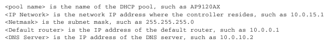 Note DHCP Option 43 is limited to one access point type per DHCP pool. You must configure a separate DHCP pool for each access point type.
