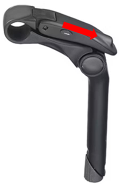 To adjust the angle of the handlebars, operate the lever on the side of the stem by pulling it in the direction indicated on the lever itself so that the valve on the stem opens.