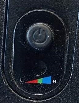 To know the charge level, press and hold the charge button located above the battery. Please note that the charge LED remains functional even if the battery is switched off (see below).