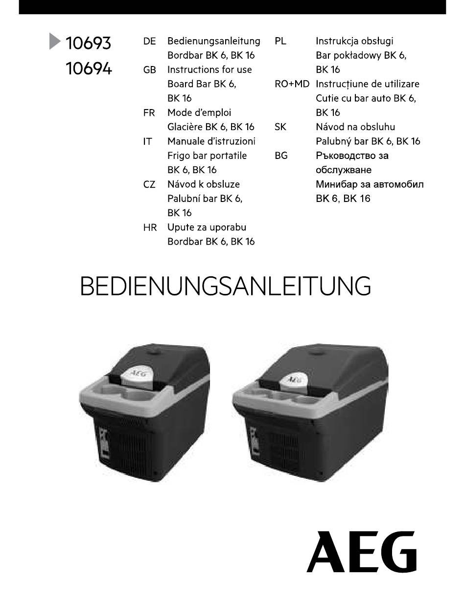 Bar poktadowy BK 6, 10694 Instructions for use BK 16 Board Bar BK 6, Instructiune de utilizare RO+MD Cutie cu bar auto BK 6, BK 16 Mode d'emploi BK 16 Glaciére BK 6, BK 16 Névod na obsluhu Manuale d'istruzioni...