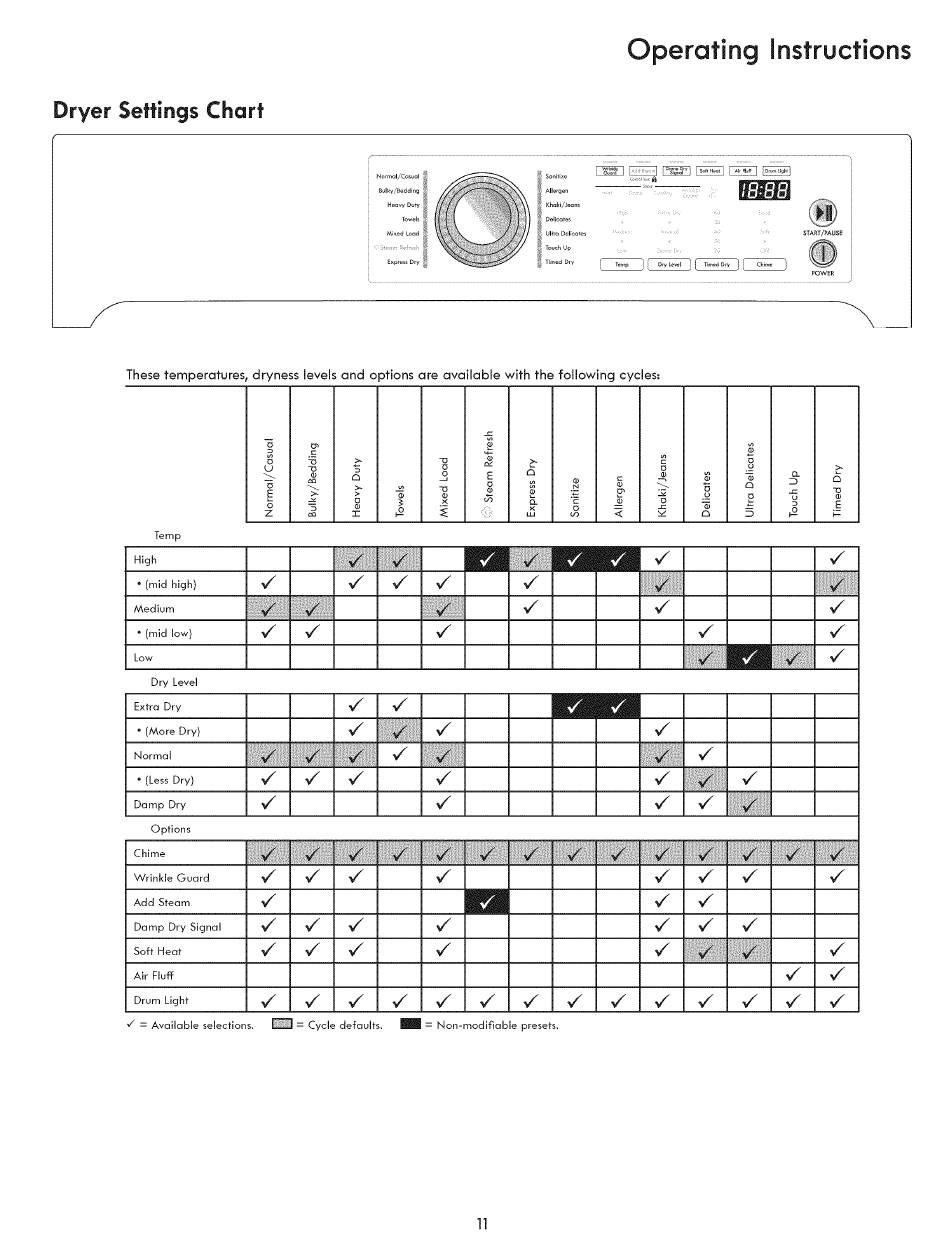 Dryer Settings Chart