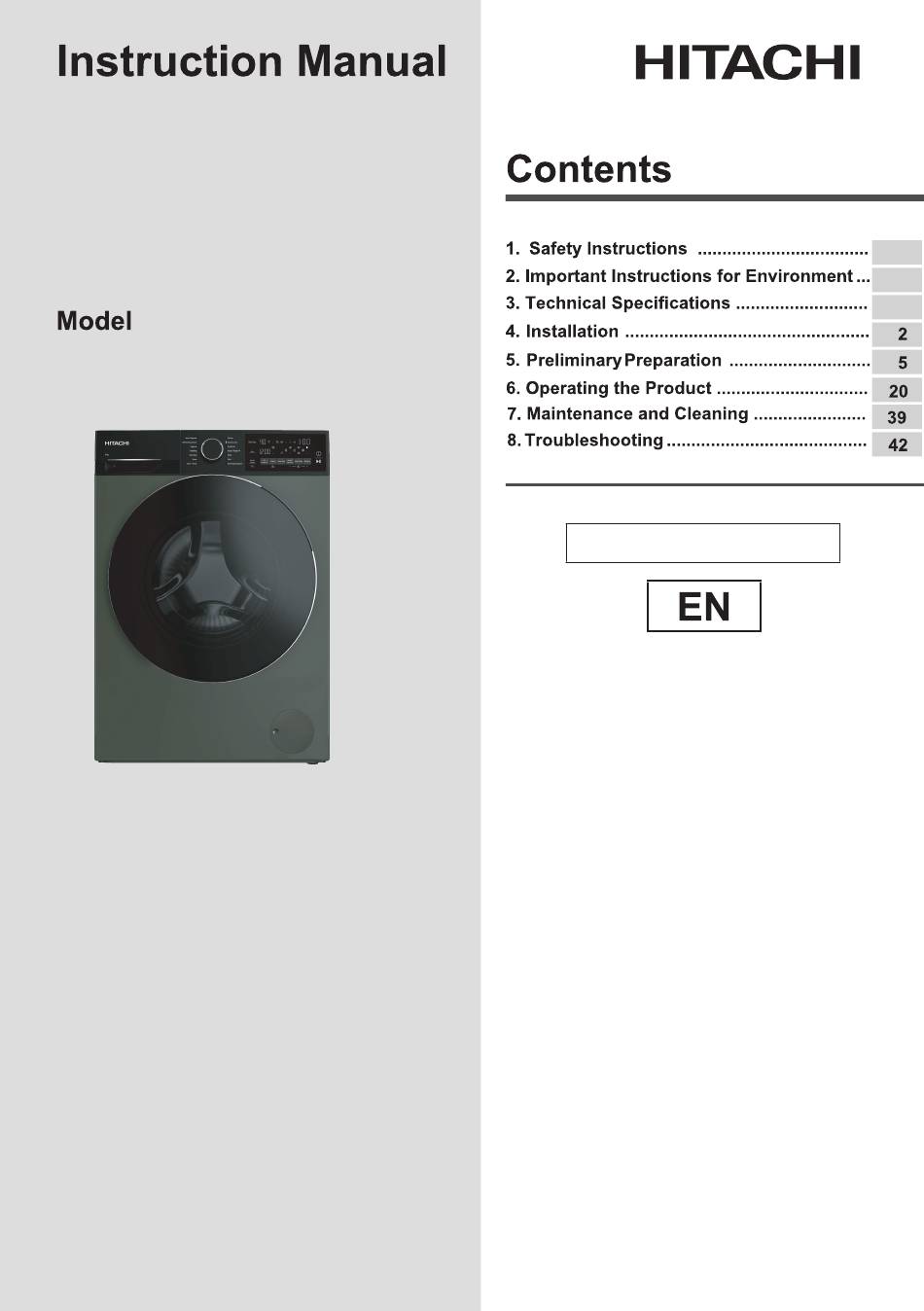 Washing Machine Front Loading BD-90XKVEADM For household use only Thank you for purchasing a Hitachi front loading washing machine. ■ Please read this Instruction Manual carefully for proper operation of the machine. ■ Please keep this Instruction Manual for future reference.