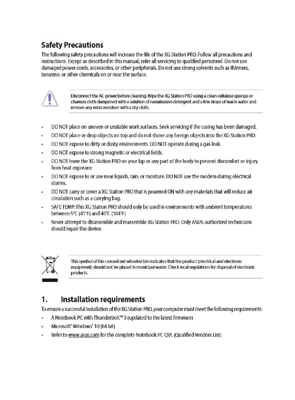 Neverattempt to disassemble and reassemble XGStationPRO. OnlyASUS-authorized t echnicians