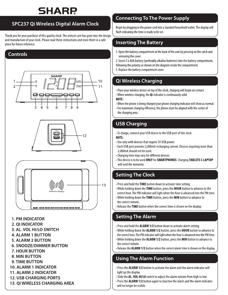 SPC237 Qi Wireless Digital Alarm Clock