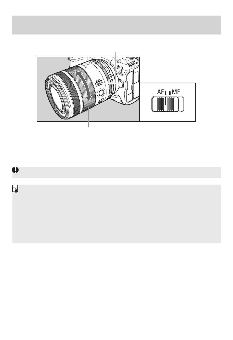 To use only manual focusing (MF), set the focus mode switch to MF,