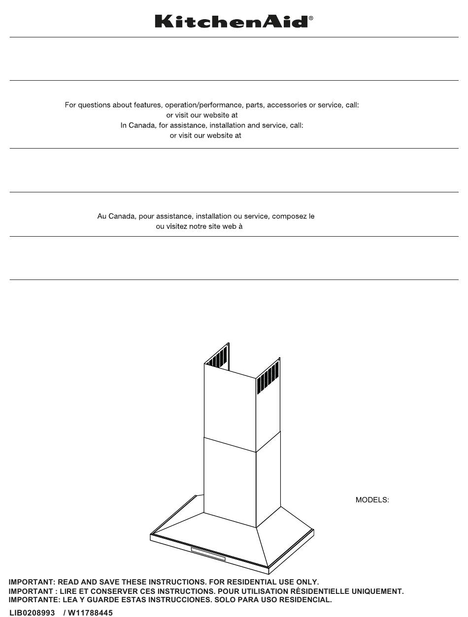 ASSISTANCE OR SERVICE If you need service In Canada If you need replacement parts 1-800-807-6777 www.kitchenaid.ca/owners Our Consultants Provide Assistance With: In the U.S.A. 1-800-422-1230 For Further Assistance www.kitchenaid.com/owners Our Consultants Provide Assistance With: Accessories Charcoal Filter Kit W10272068 Recirculation Kit...