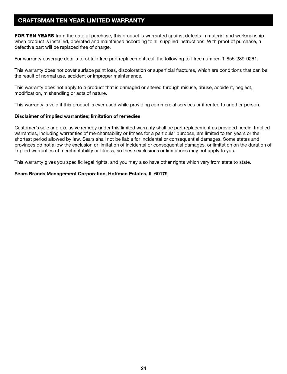 FOR TEN YEARS from the date of purchase, this product is warranted against defects in material and workmanship