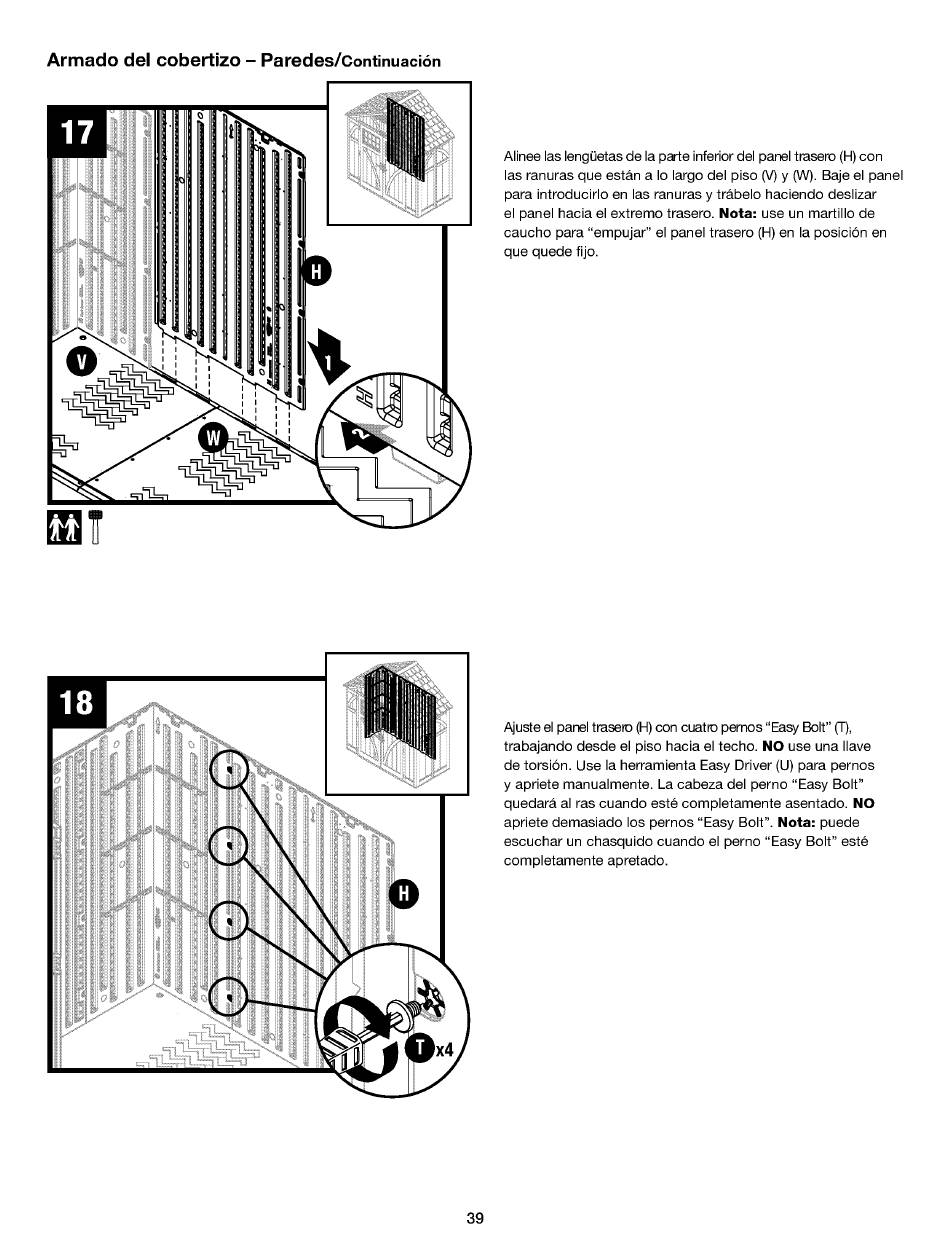 las ranuras que estan a 10largo del piso (V) y (W). Baje el panel