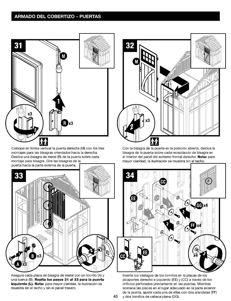 una tuerca (B). Repita Ios pasos 31 al 33 para la puerta