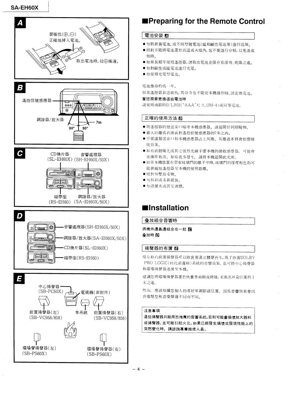 Preparing For The Remote Control; Installation; Pro Logic - Panasonic Sa-Eh60X Service Manual