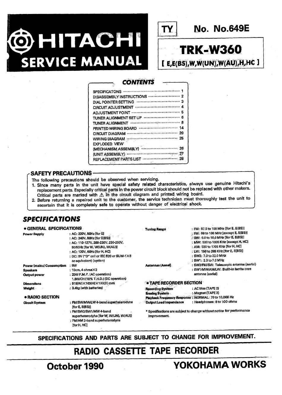 parts. E specially critical parts inthepower c ircuit b lock s hould notbereplaced withothermakers.