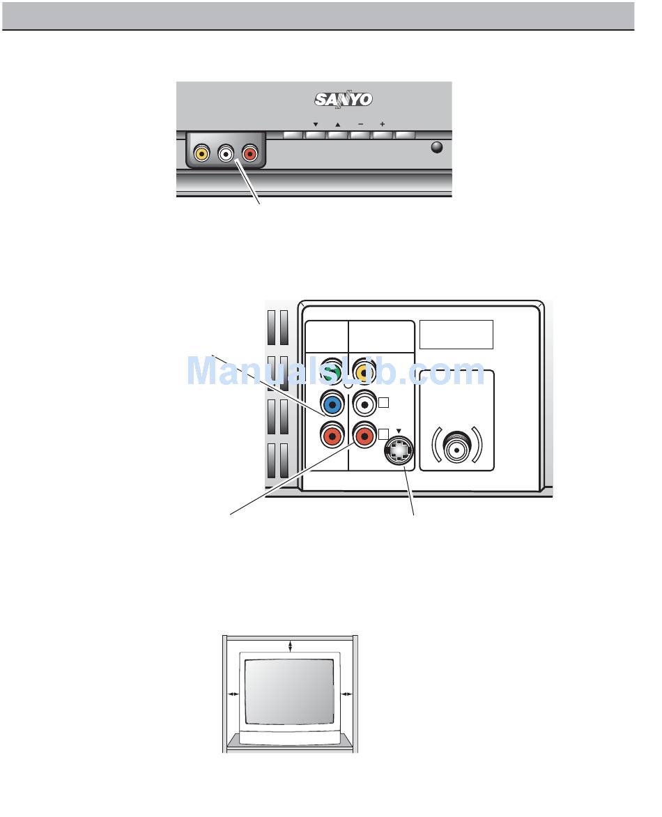 Connect video equipment here (see pages 6 and 8).