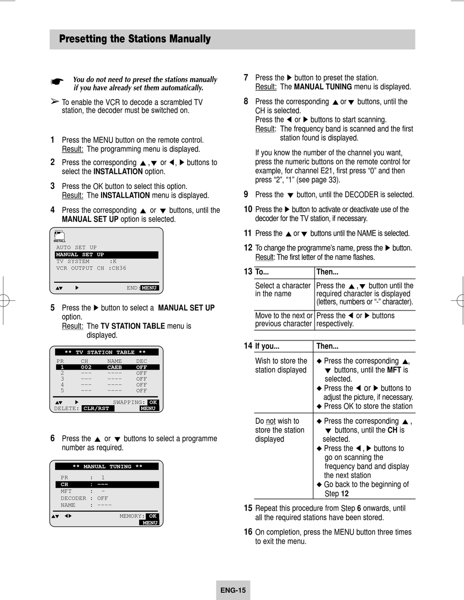 Presetting the Stations Manually