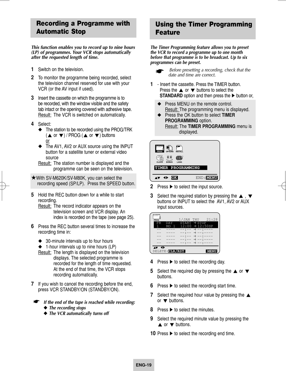 (LP) of programmes. Your VCR stops automatically