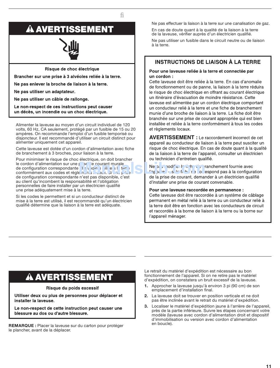 Instructions D'installation - Whirlpool Wtw5100Vq - 3.2 Cu. Ft. Washer Installation Instructions Manual