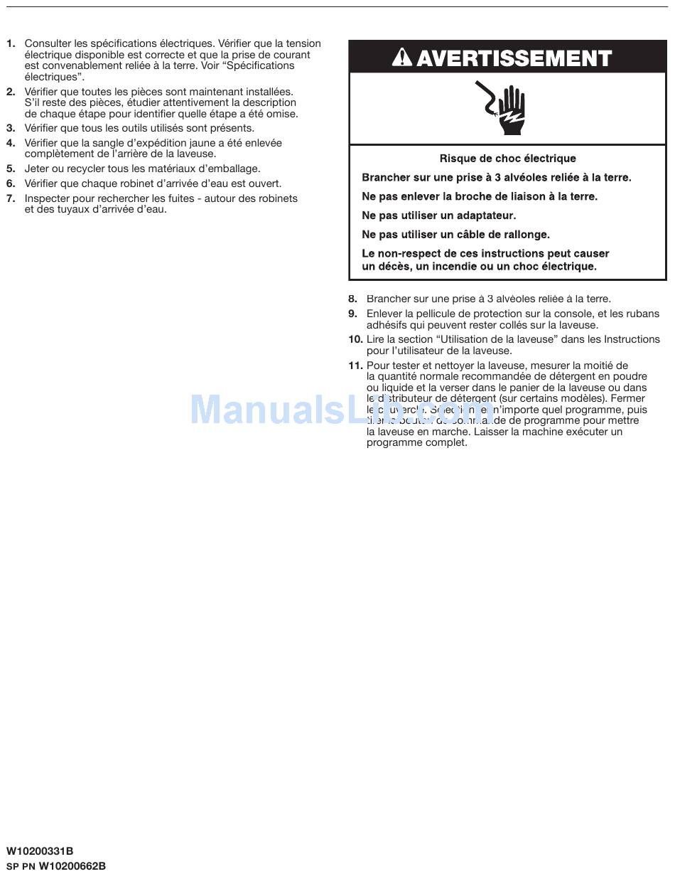 Achever L'installation - Whirlpool Wtw5100Vq - 3.2 Cu. Ft. Washer Installation Instructions Manual