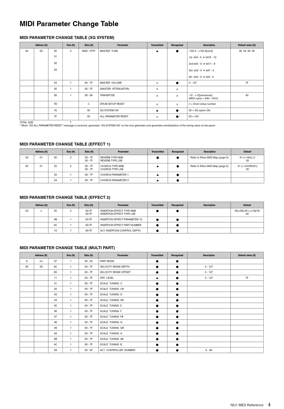 MIDI PARAMETER CHANGE TABLE (MULTI PART)