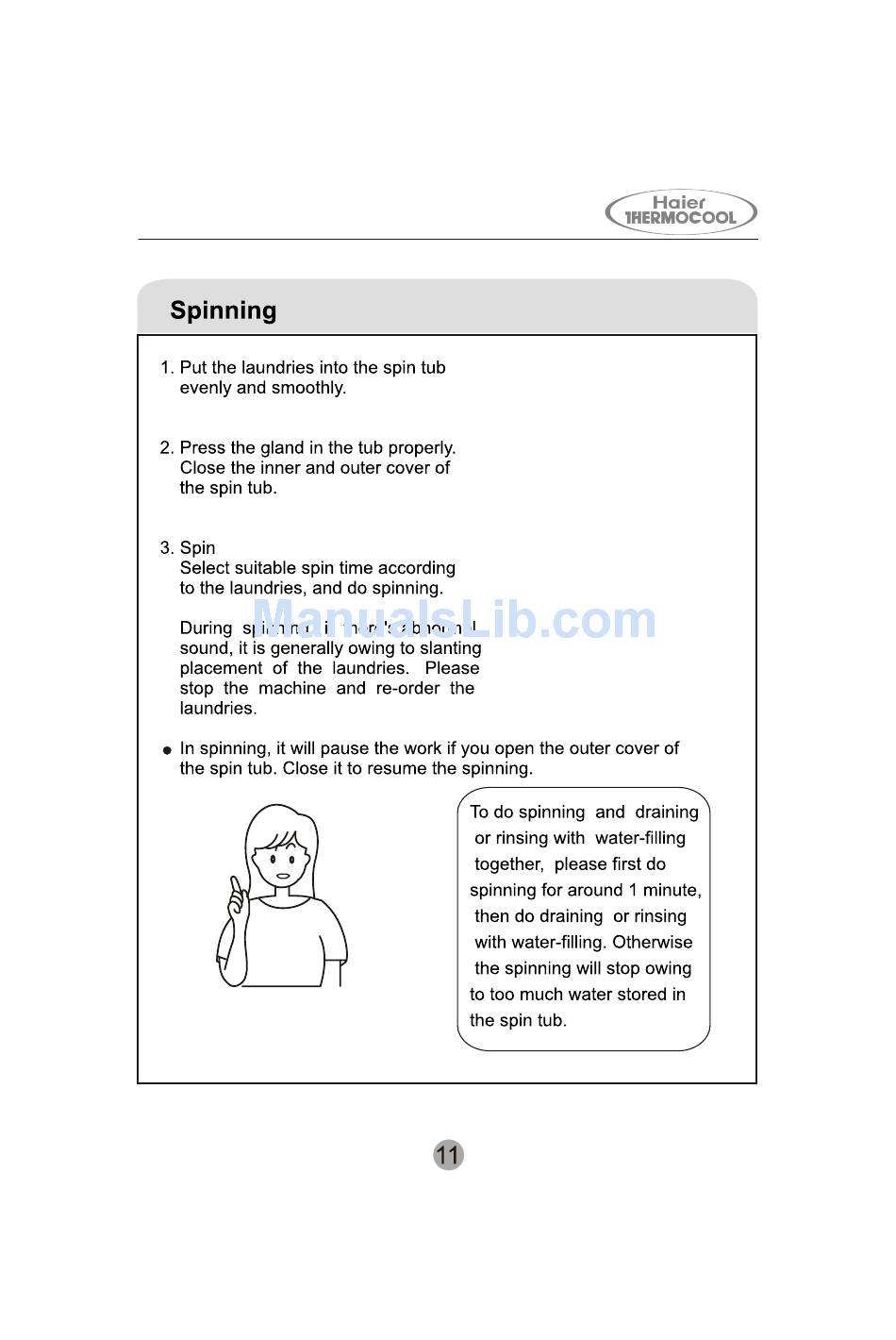 Spinning - Haier Thermocool Hwm110-287S User Manual
