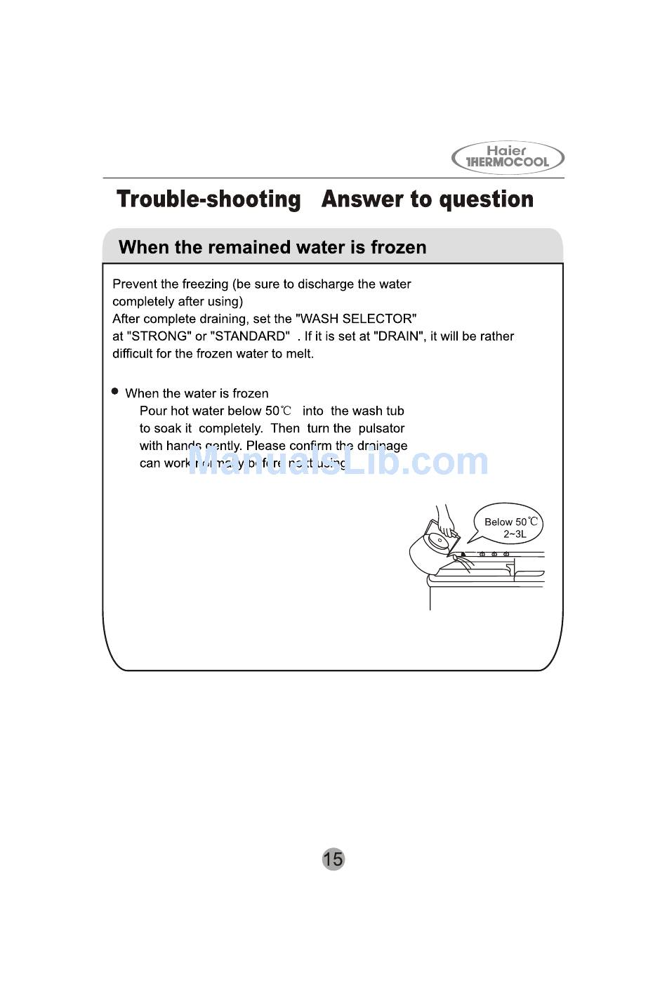 Troubleshooting; When The Remained Water Is Frozen - Haier Thermocool Hwm110-287S User Manual
