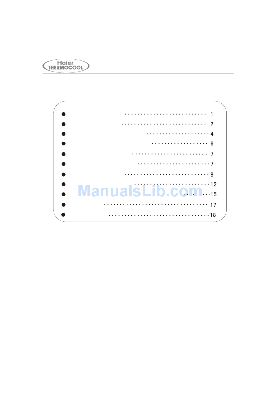 Contents - Haier Thermocool Hwm110-287S User Manual