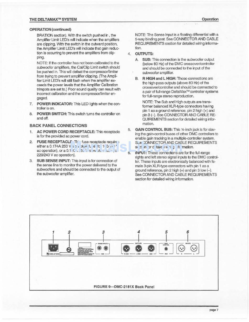 Back Panel Connections; Outputs; Gain Control Bus - Electro-Voice Deltamax Dmc-2181X Owner's Manual