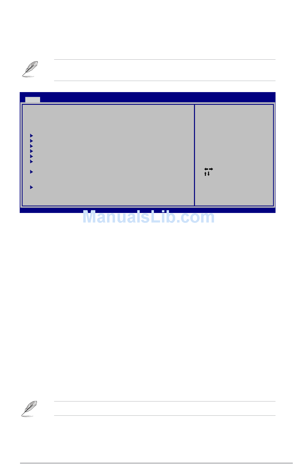 Refer to section 2.2.1 BIOS menu screen for information on the menu screen items and