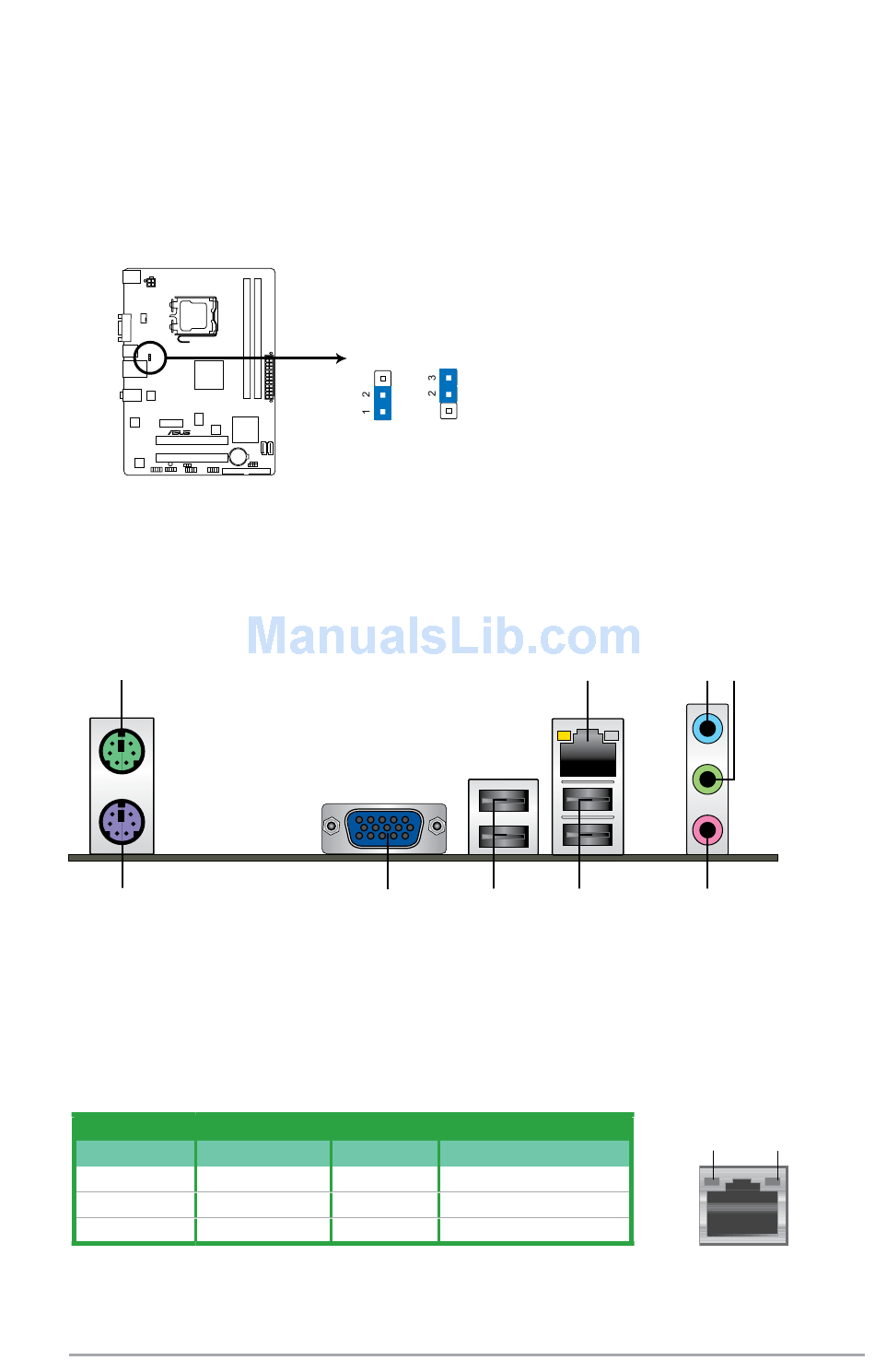 PS/2 mouse port (green). This port is for a PS/2 mouse.