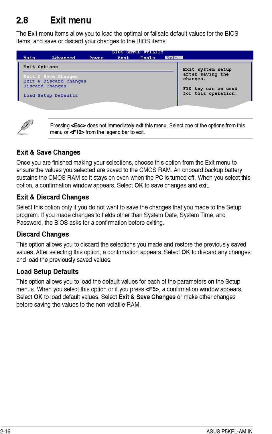 Password, the BIOS asks for a confirmation before exiting.