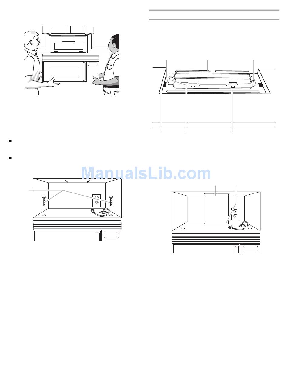 6. If adjustment is required, rotate microwave oven downward.
