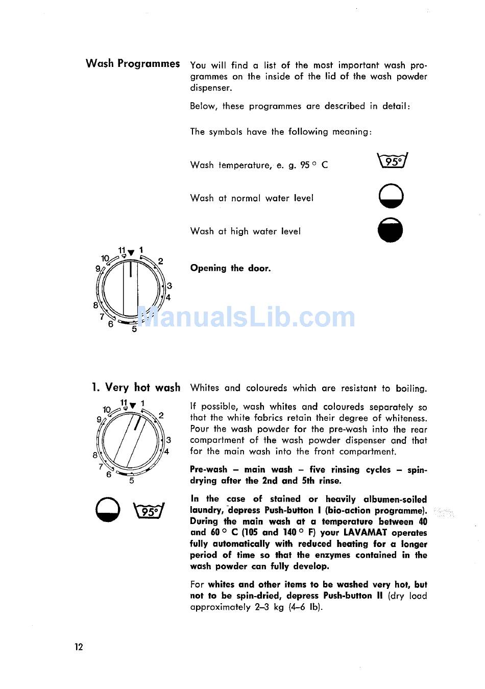 Wash Programmes; Very Hot Wash; Pre-Wash - Aeg Princess S Operating Instructions Manual
