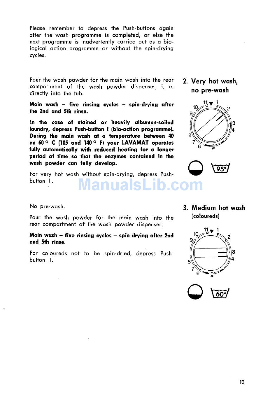Very Hot Wash, No Pre-Wash; Medium Hot Wash - Aeg Princess S Operating Instructions Manual