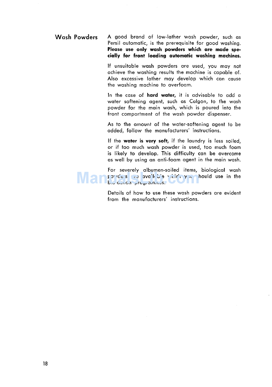 Wash Powders - Aeg Princess S Operating Instructions Manual