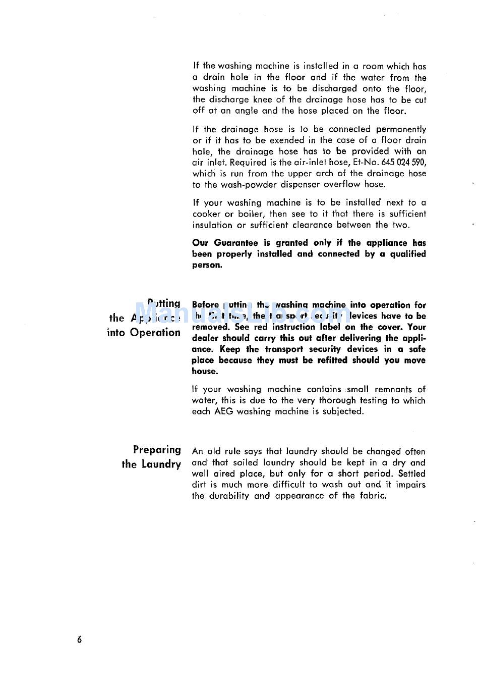 Putting The Appearance Into Operation; Preparing The Laundry - Aeg Princess S Operating Instructions Manual
