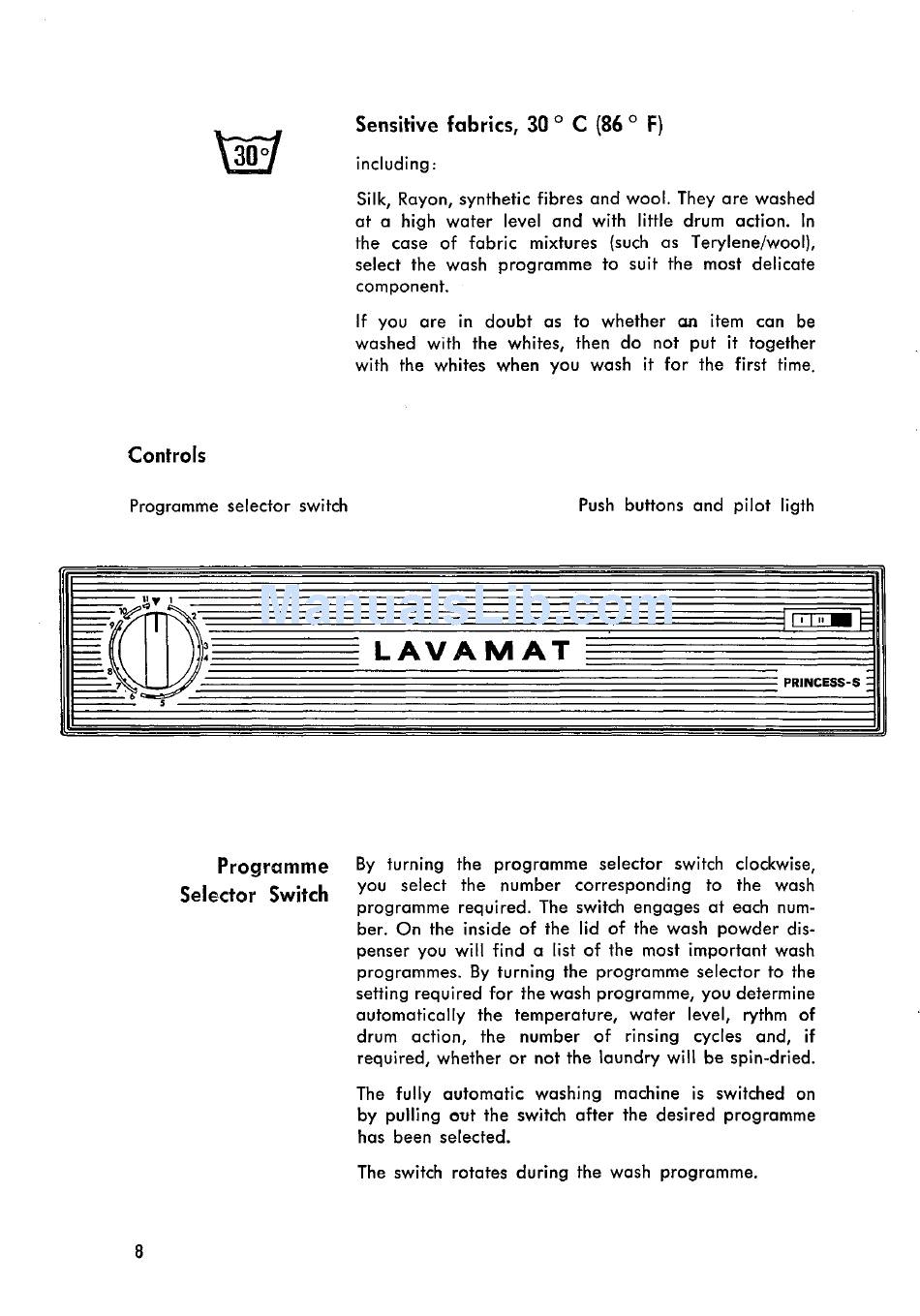 Controls; Sensitive Fabrics; Programme Selector Switch - Aeg Princess S Operating Instructions Manual