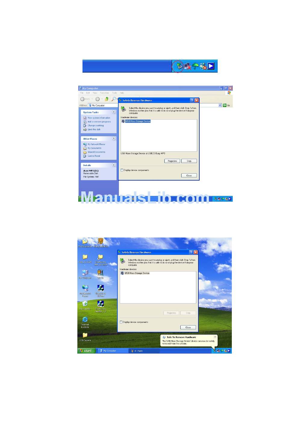 removed safely from the system", and then you can pull out the Acer Easy MP3 Player