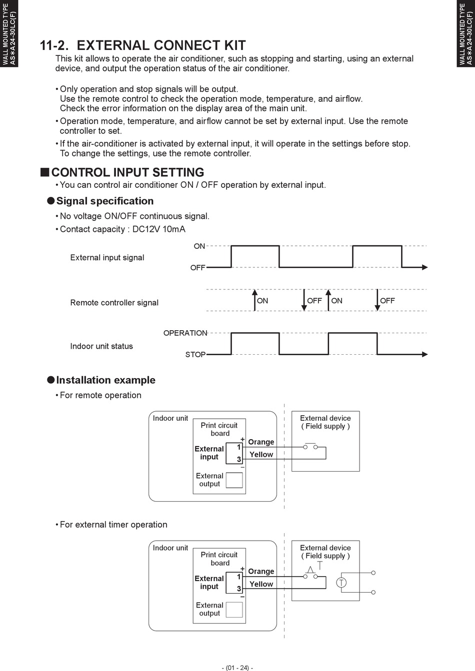 You can control air conditioner ON / OFF operation by external input.