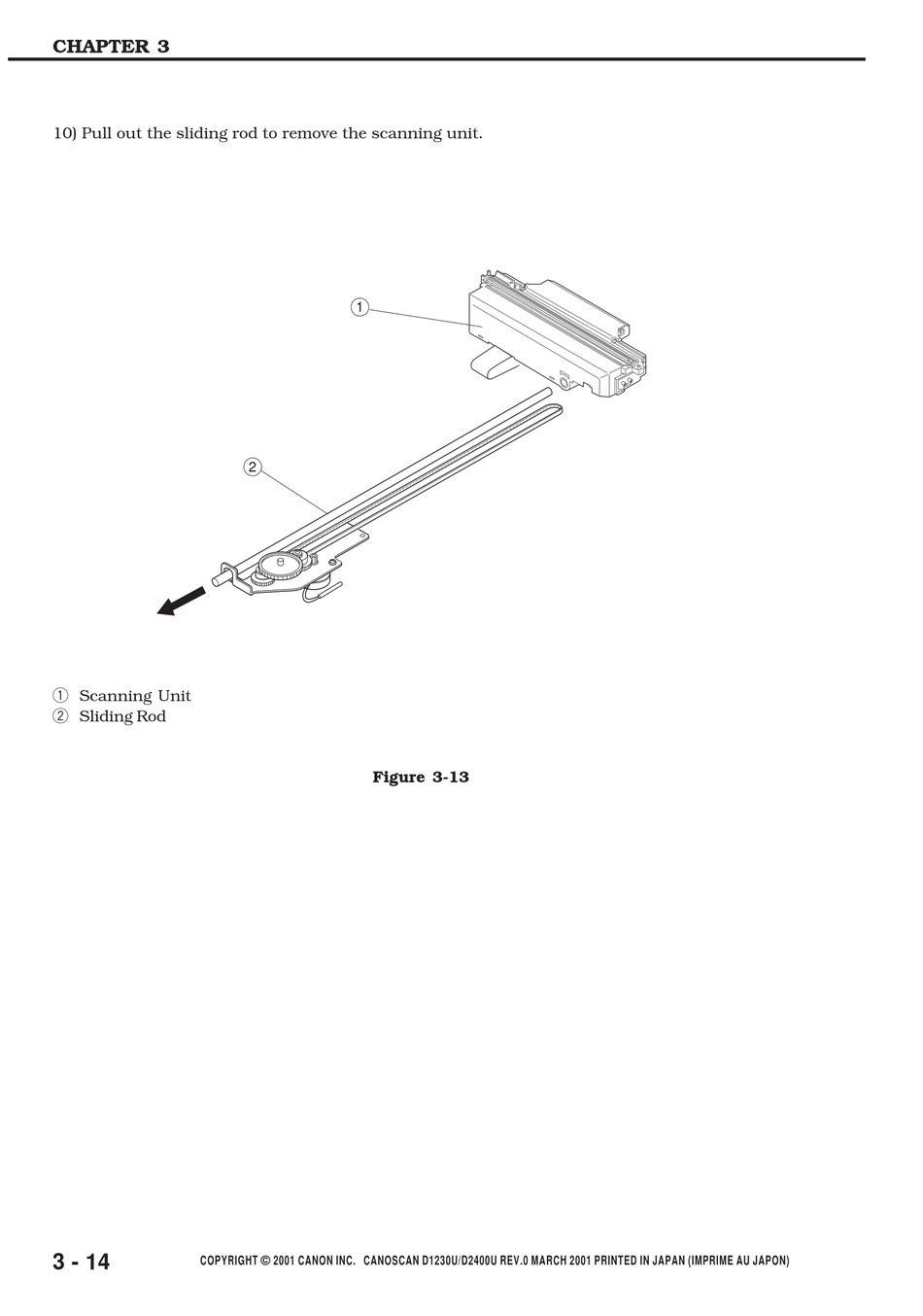 10) Pull out the sliding rod to remove the scanning unit.