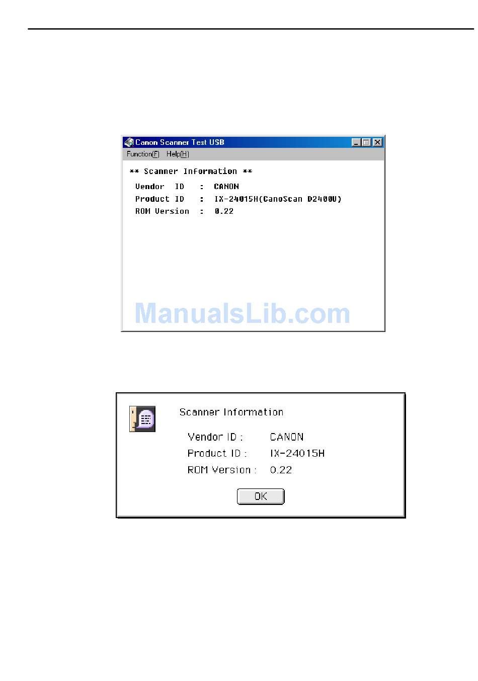 Select "Scanner information" from the "Function" menu to display as shown in Figure 5-4