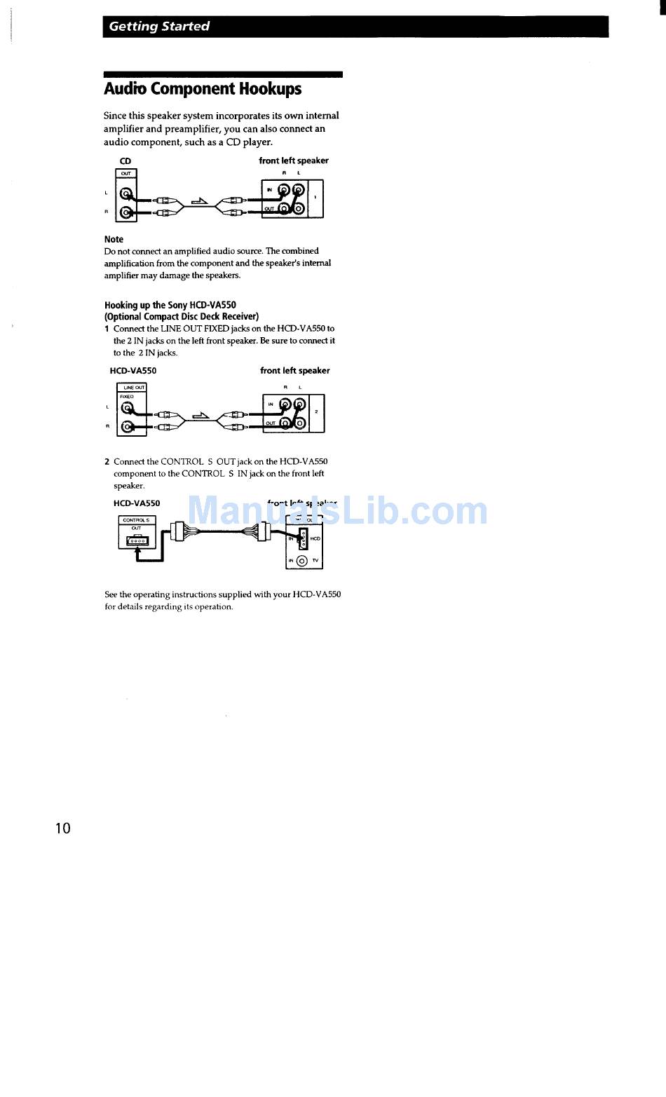 Audio Component Hookups - Sony Sa-Va55 Operating Instructions Manual