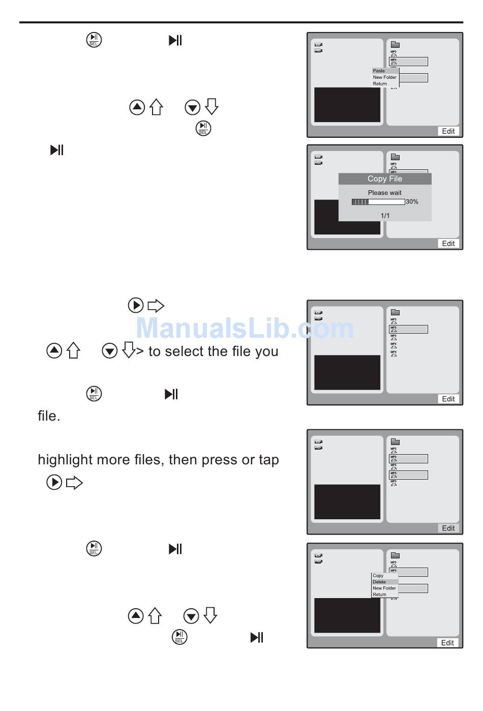 / > to select