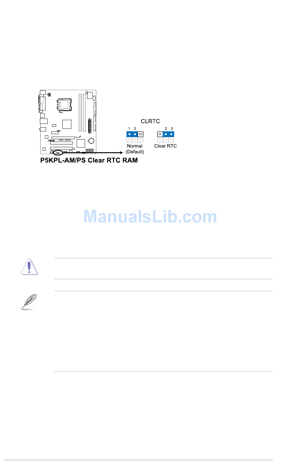 Except when clearing the RTC RAM, never remove the cap on CLRTC jumper default